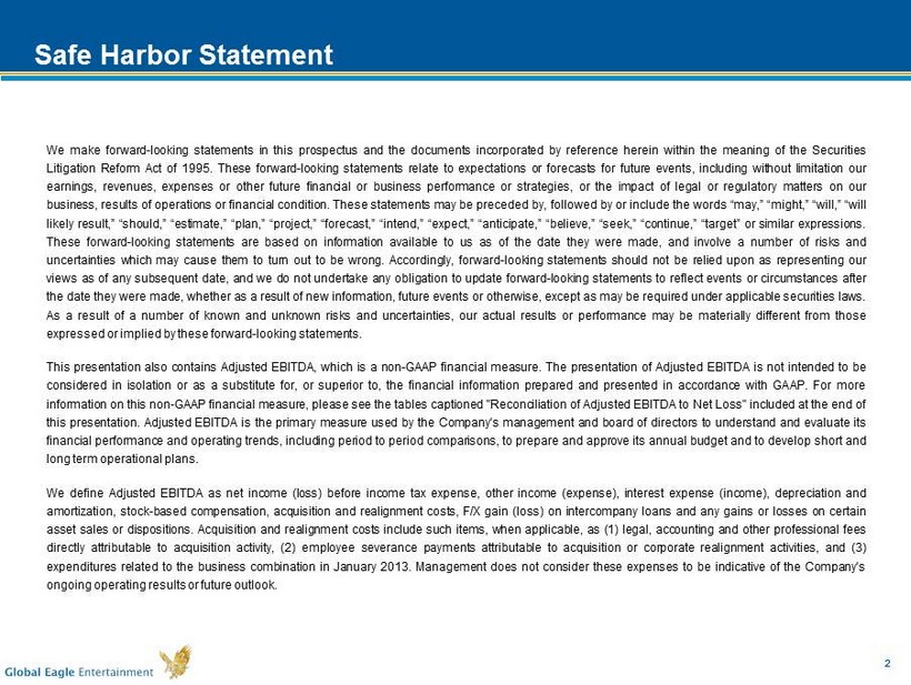 2 Safe Harbor Statement We make forward - looking statements in this prospectus and the documents incorporated by reference herein within the meaning of the Securities Litigation Reform Act of 1995 . These forward - looking statements relate to expectations or forecasts for future events, including without limitation our earnings, revenues, expenses or other future financial or business performance or strategies, or the impact of legal or regulatory matters on our business, results of operations or financial condition . These statements may be preceded by, followed by or include the words “may,” “might,” “will,” “will likely result,” “should,” “estimate,” “plan,” “project,” “forecast,” “intend,” “expect,” “anticipate,” “believe,” “seek,” “continue,” “target” or similar expressions . These forward - looking statements are based on information available to us as of the date they were made, and involve a number of risks and uncertainties which may cause them to turn out to be wrong . Accordingly, forward - looking statements should not be relied upon as representing our views as of any subsequent date, and we do not undertake any obligation to update forward - looking statements to reflect events or circumstances after the date they were made, whether as a result of new information, future events or otherwise, except as may be required under applicable securities laws . As a result of a number of known and unknown risks and uncertainties, our actual results or performance may be materially different from those expressed or implied by these forward - looking statements . This presentation also contains Adjusted EBITDA, which is a non - GAAP financial measure . The presentation of Adjusted EBITDA is not intended to be considered in isolation or as a substitute for, or superior to, the financial information prepared and presented in accordance with GAAP . For more information on this non - GAAP financial measure, please see the tables captioned "Reconciliation of Adjusted EBITDA to Net Loss" included at the end of this presentation . Adjusted EBITDA is the primary measure used by the Company's management and board of directors to understand and evaluate its financial performance and operating trends, including period to period comparisons, to prepare and approve its annual budget and to develop short and long term operational plans . We define Adjusted EBITDA as net income (loss) before income tax expense, other income (expense), interest expense (income), depreciation and amortization, stock - based compensation, acquisition and realignment costs, F/X gain (loss) on intercompany loans and any gains or losses on certain asset sales or dispositions . Acquisition and realignment costs include such items, when applicable, as ( 1 ) legal, accounting and other professional fees directly attributable to acquisition activity, ( 2 ) employee severance payments attributable to acquisition or corporate realignment activities, and ( 3 ) expenditures related to the business combination in January 2013 . Management does not consider these expenses to be indicative of the Company's ongoing operating results or future outlook .