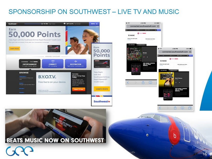16 SPONSORSHIP ON SOUTHWEST – LIVE TV AND MUSIC