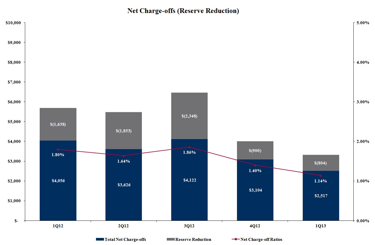 (7) | Net charge-offs exclude $839 million and $1.1 billion of write-offs in the purchased credit-impaired loan portfolio at March 31, 2013 and December 31, 2012. These write-offs decreased the purchased credit-impaired valuation allowance included as part of the allowance for loan and lease losses. |