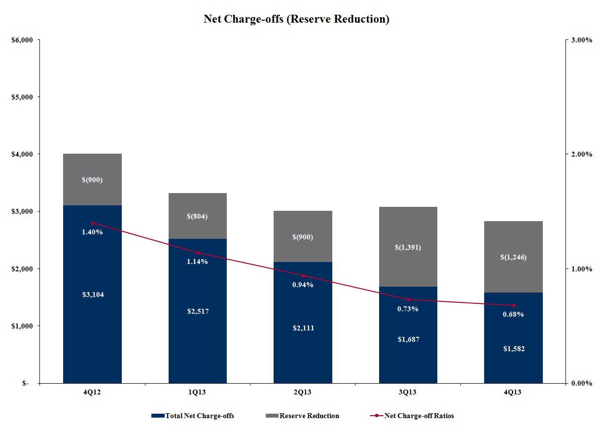 (7) | Net charge-offs exclude $741 million, $443 million and $1.1 billion of write-offs in the purchased credit-impaired loan portfolio at December 31, 2013, September 30, 2013 and December 31, 2012, respectively. These write-offs decreased the purchased credit-impaired valuation allowance included as part of the allowance for loan and lease losses. |