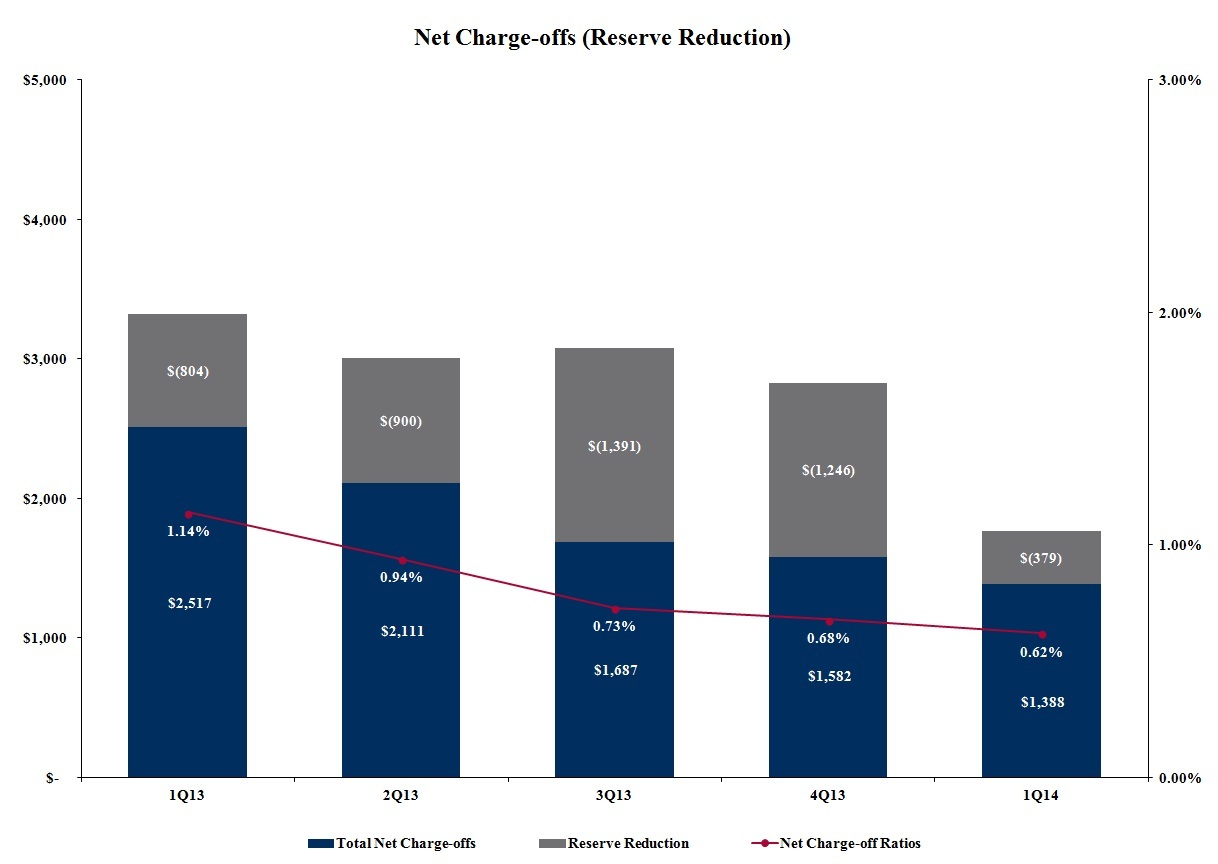 (7) | Net charge-offs exclude $391 million, $741 million and $839 million of write-offs in the purchased credit-impaired loan portfolio at March 31, 2014, December 31, 2013 and March 31, 2013. These write-offs decreased the purchased credit-impaired valuation allowance included as part of the allowance for loan and lease losses. |