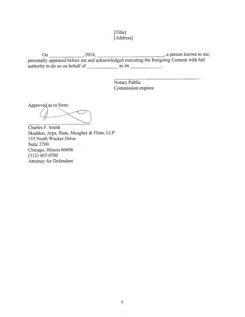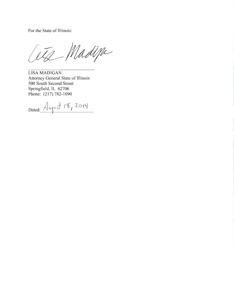 For the State of T1linois: LISA MADIGAN Attorney General State of II1inois 500 South Second Street Springfield, IL 62706 Phone: (217) 782-1090 " 1 ~ J / «;/ La \!.,{ADated: "'I - - +-- - - - -