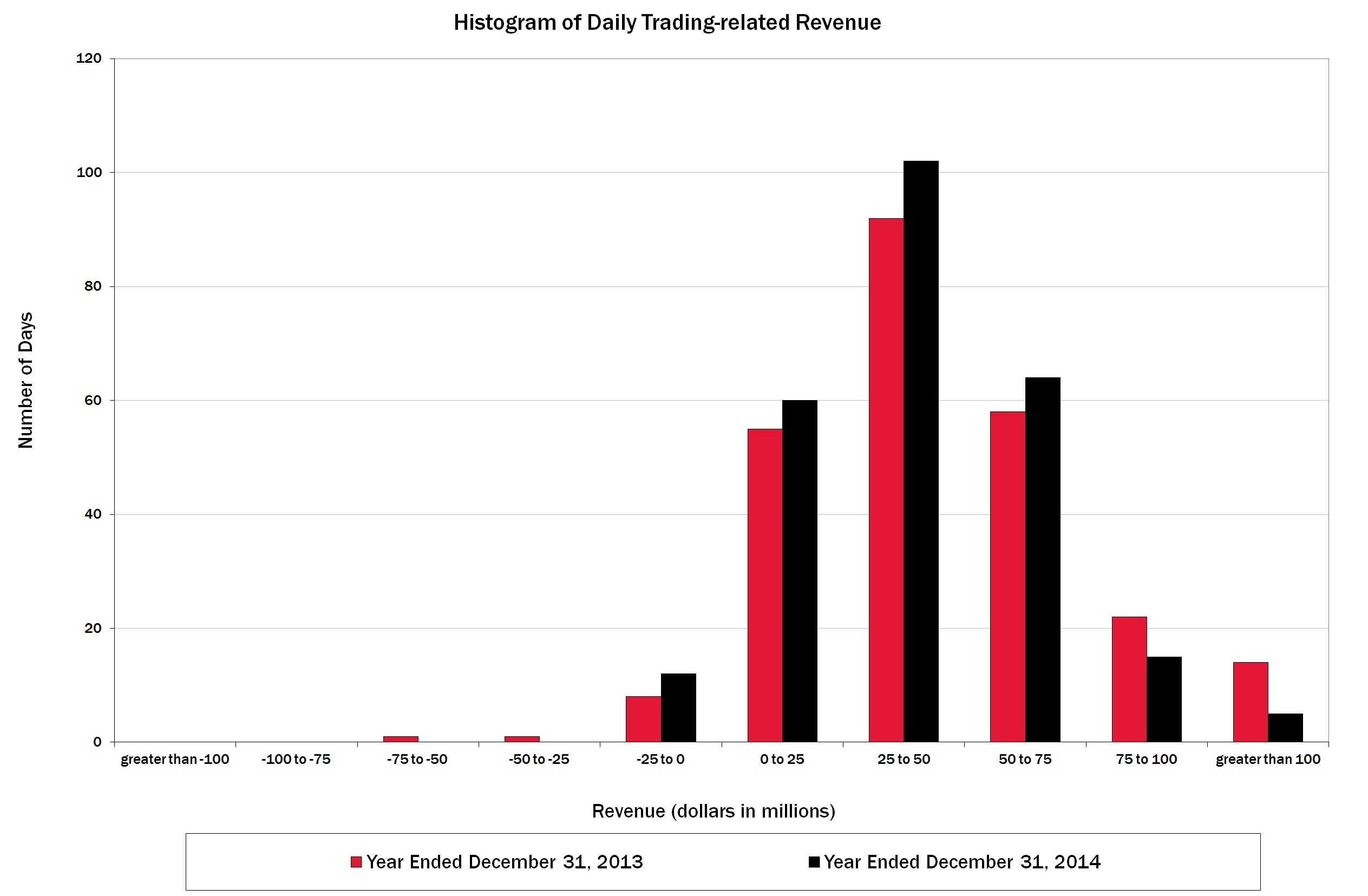 | Trading account profits decreased $747 million, which included a charge of $497 million in 2014 related to the adoption of a funding valuation adjustment (FVA) in Global Markets, partially offset by a $359 million change in net debit valuation adjustments (DVA) on derivatives. Excluding the FVA/DVA charges, trading account profits decreased $609 million due to both lower market volumes and volatility. |