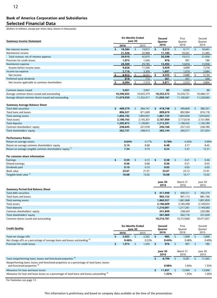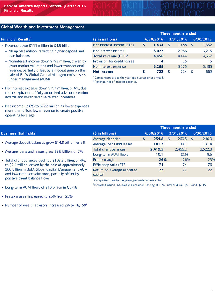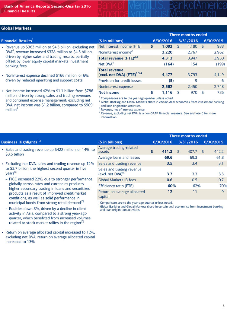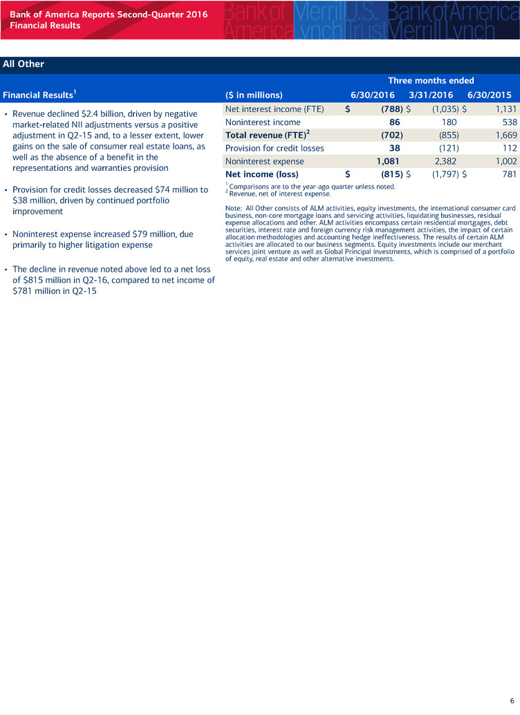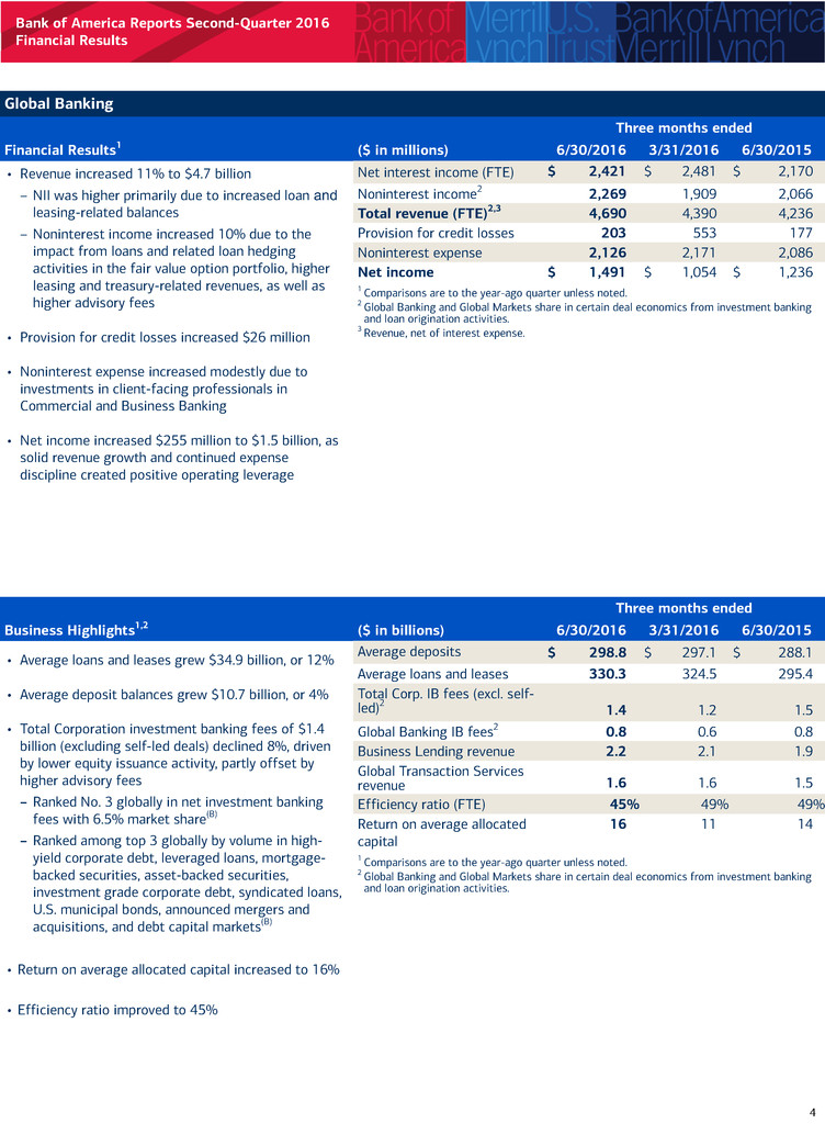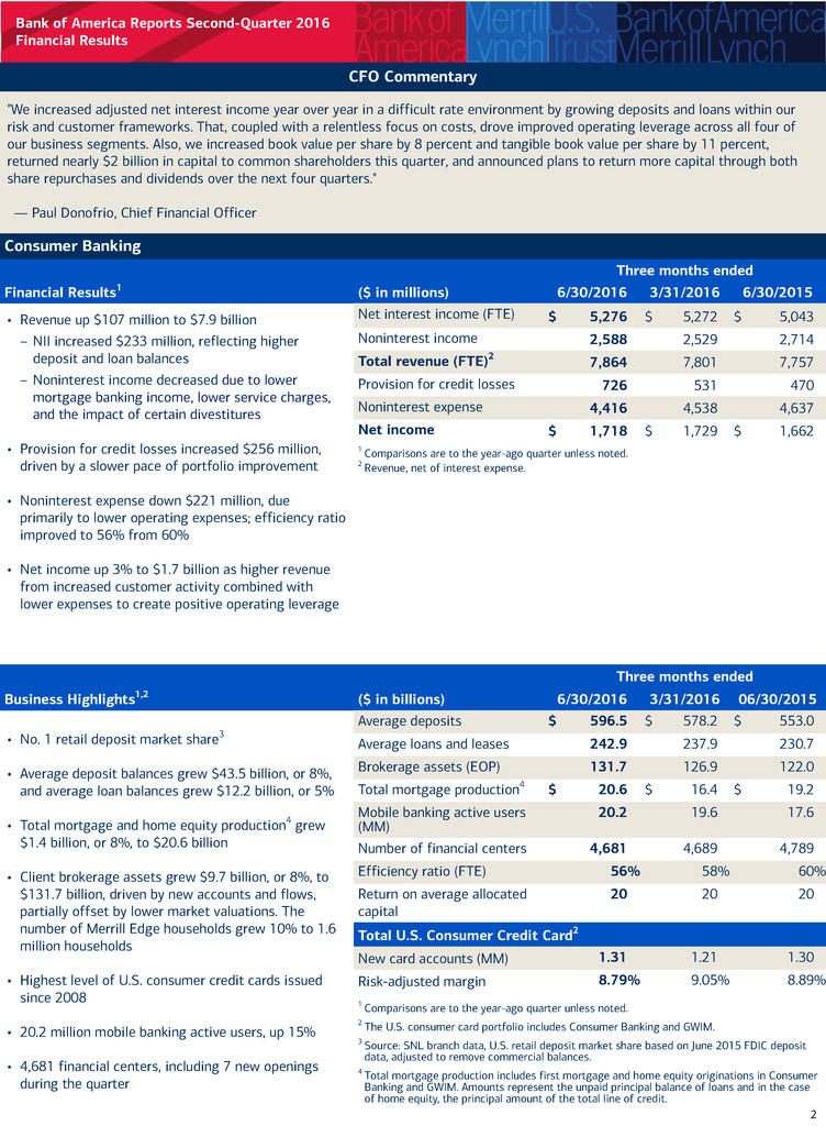 Bank of America Reports Second-Quarter 2016