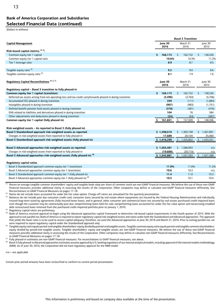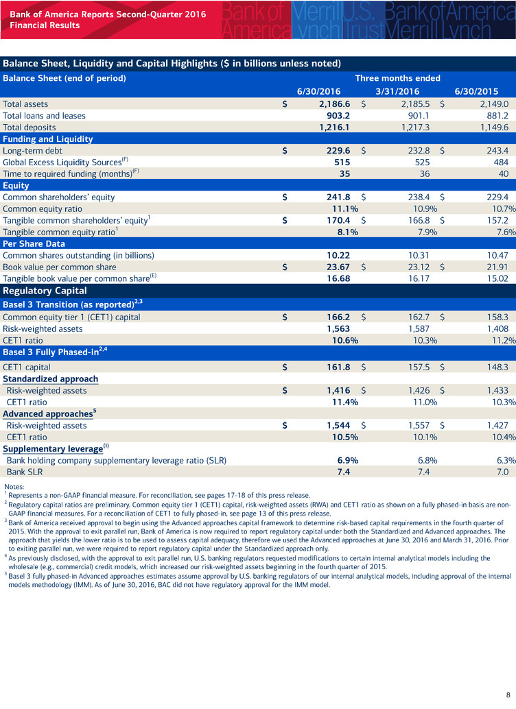 Balance Sheet Highlights ($ in billions, at end of period) June 30, 2016 March 31, 2016 June 30, 2015