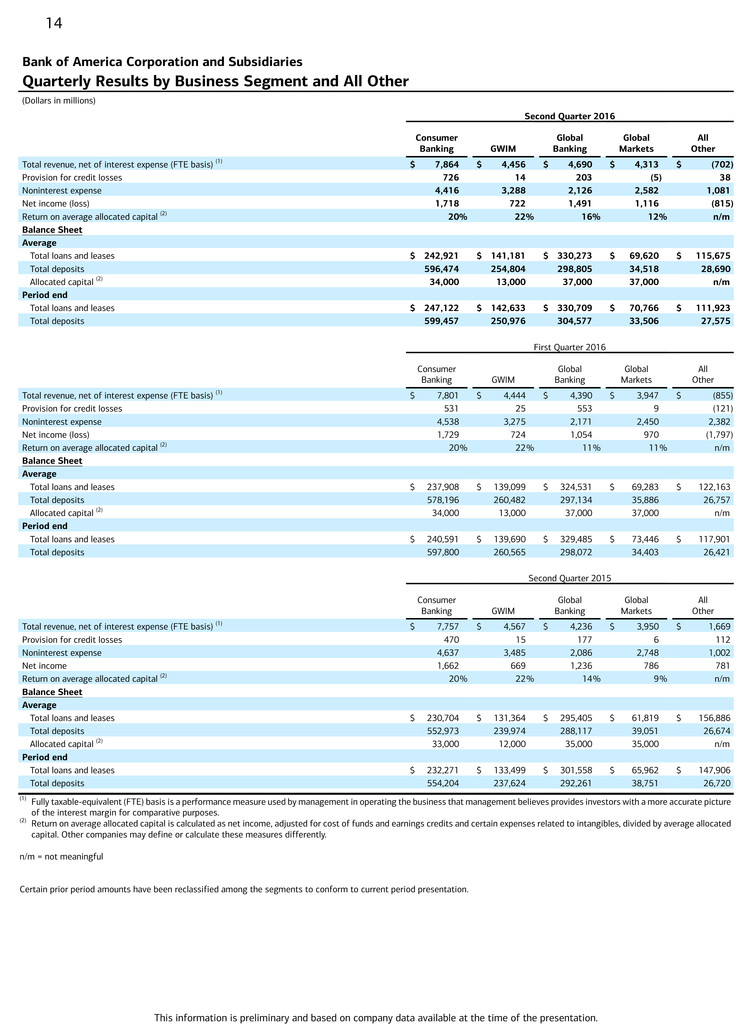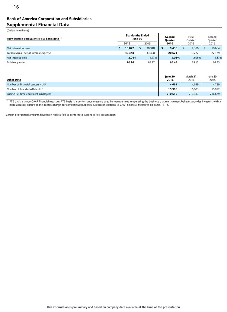 2 Fully taxable-equivalent (FTE) basis for the Corporation is a non-GAAP financial measure. See endnote (A) for more information.
