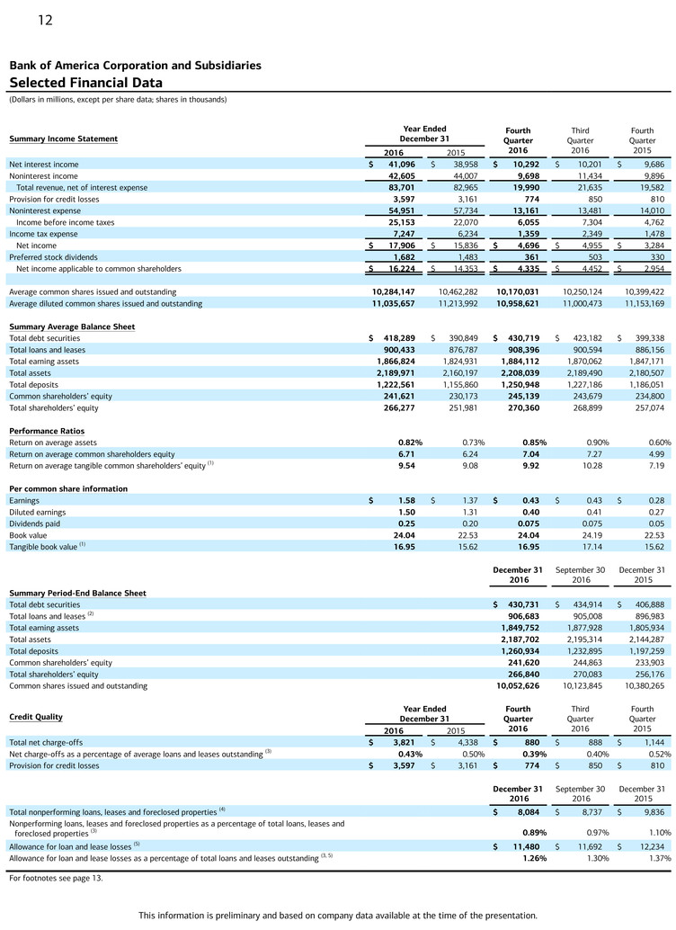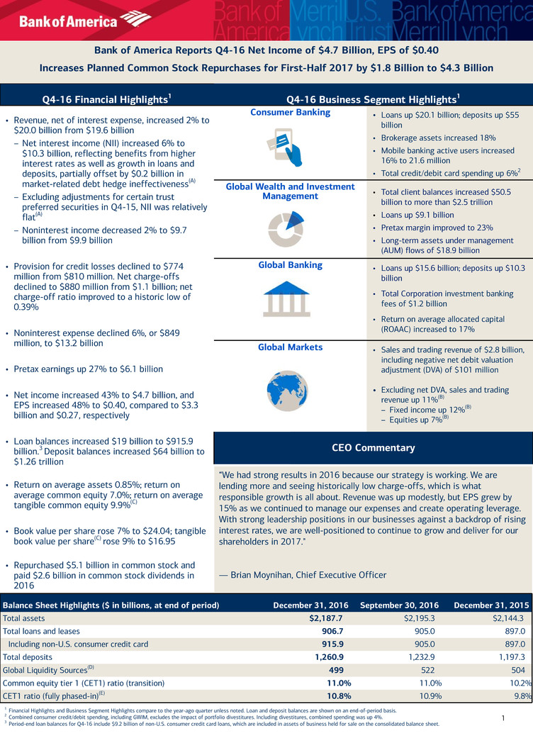 Bank of America Reports Q4-16 Net Income of $4.7 Billion, EPS of $0.40