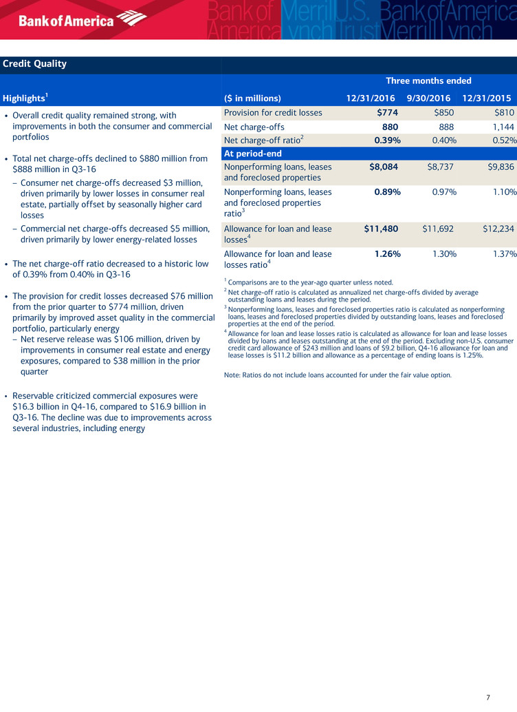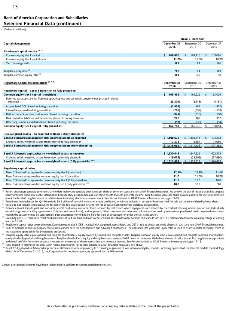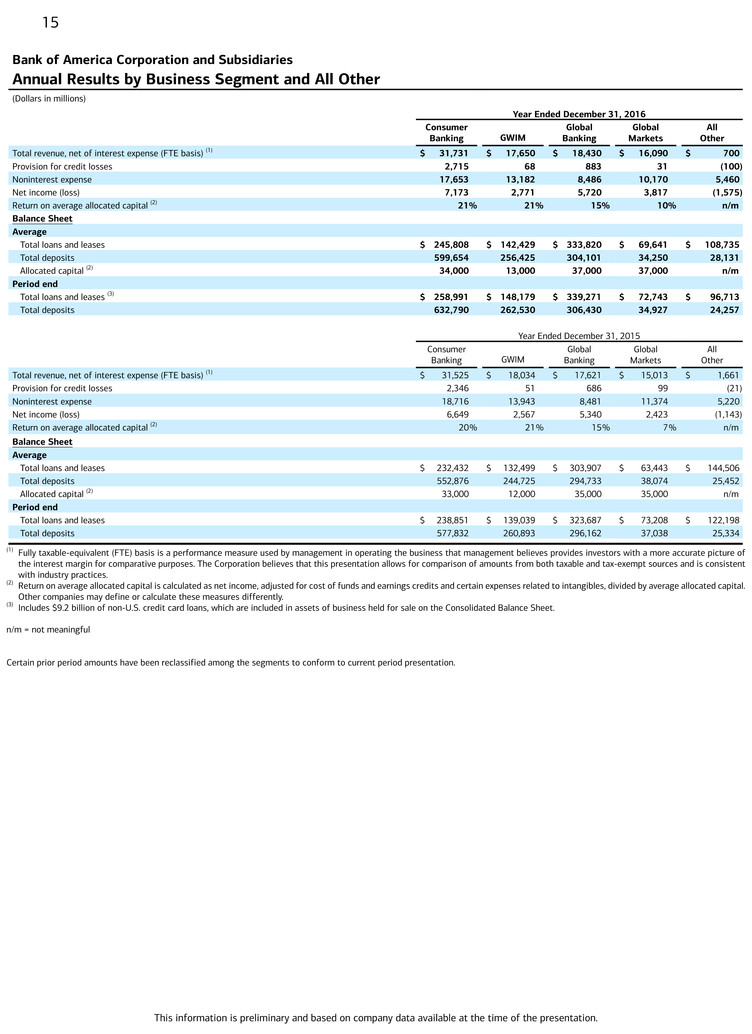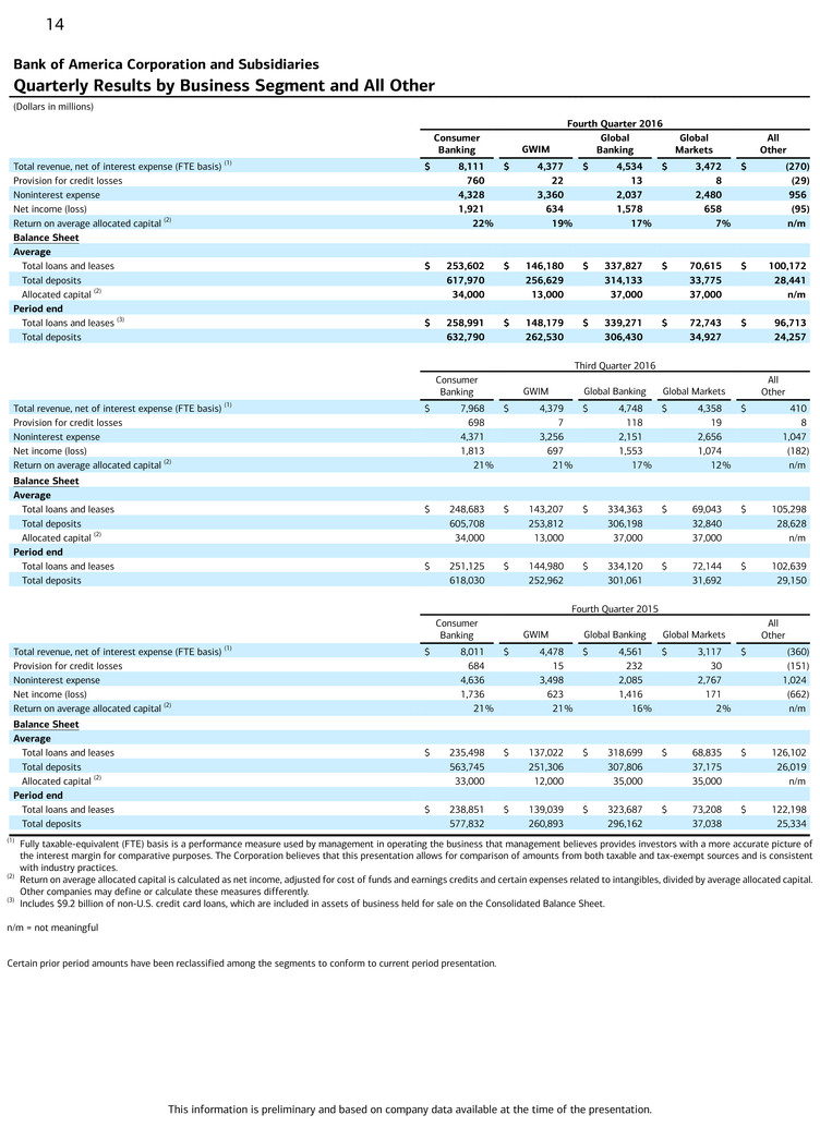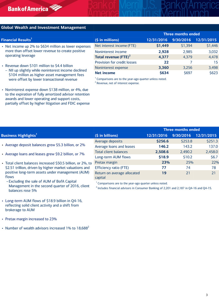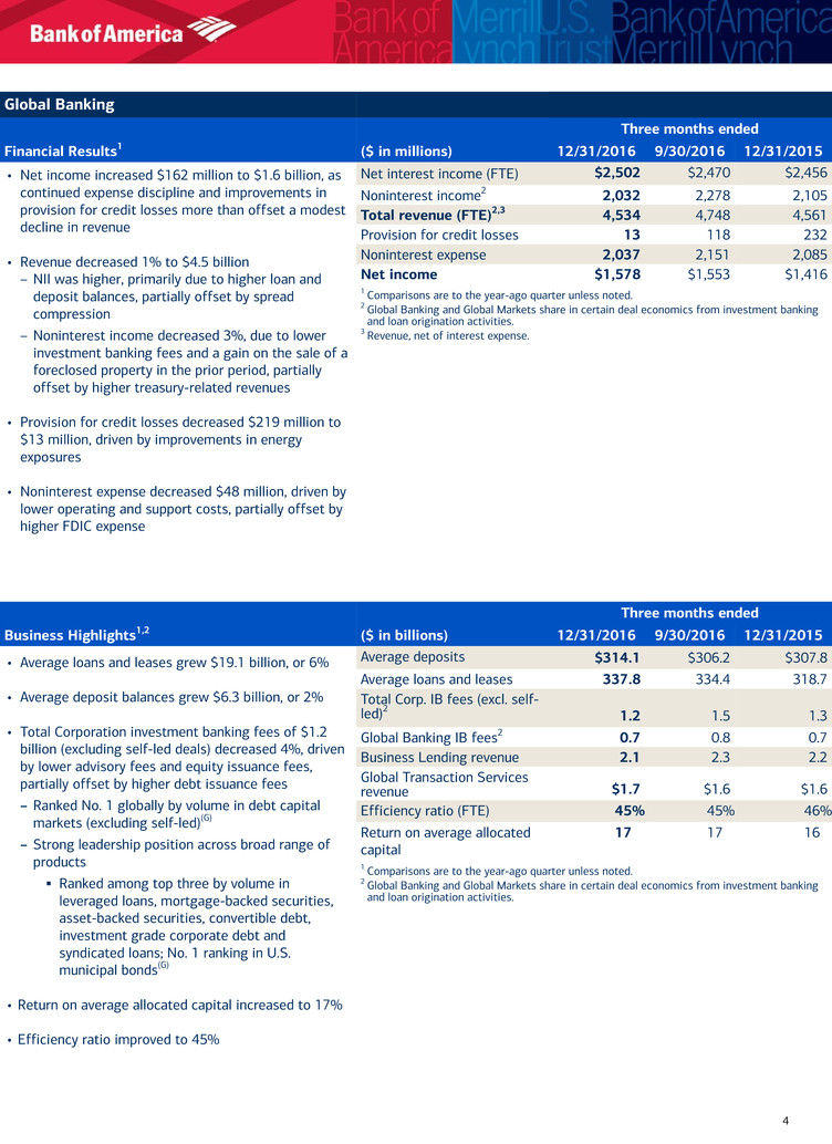 3 Period-end loan balances for Q4-16 include $9.2 billion of non-U.S. consumer credit card loans, which are included in assets of business held for sale on the consolidated balance sheet.