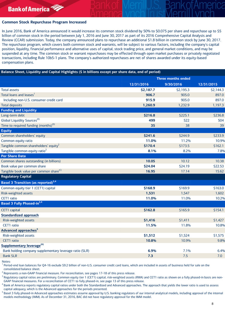 Balance Sheet Highlights ($ in billions, at end of period) December 31, 2016 September 30, 2016 December 31, 2015