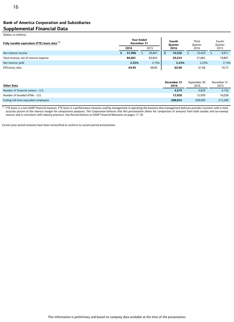 three months ended December 31, 2016, September 30, 2016 and December 31, 2015. The Corporation believes the use of these non-GAAP financial measures provides additional clarity in