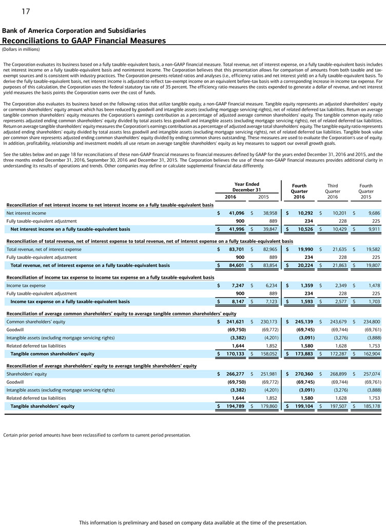 See the tables below and on page 18 for reconciliations of these non-GAAP financial measures to financial measures defined by GAAP for the years ended December 31, 2016 and 2015, and the