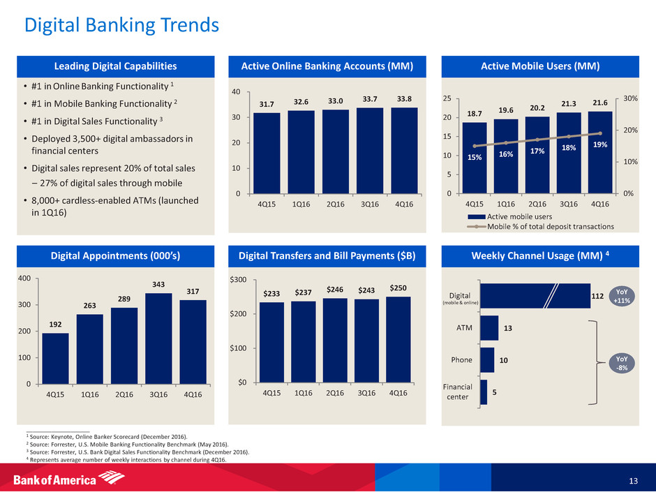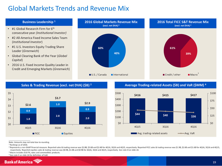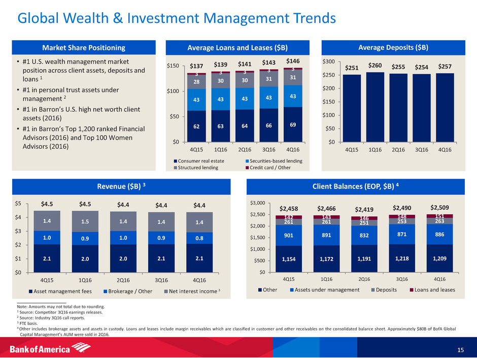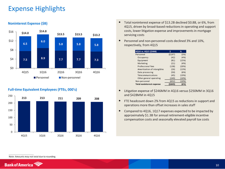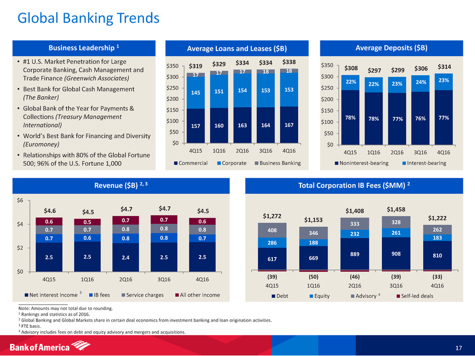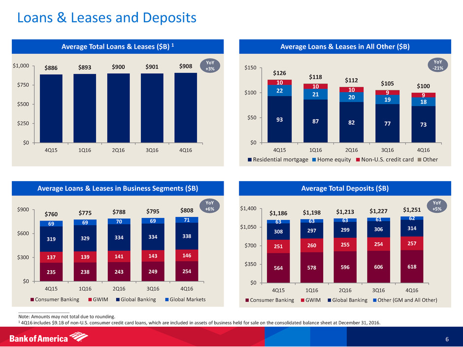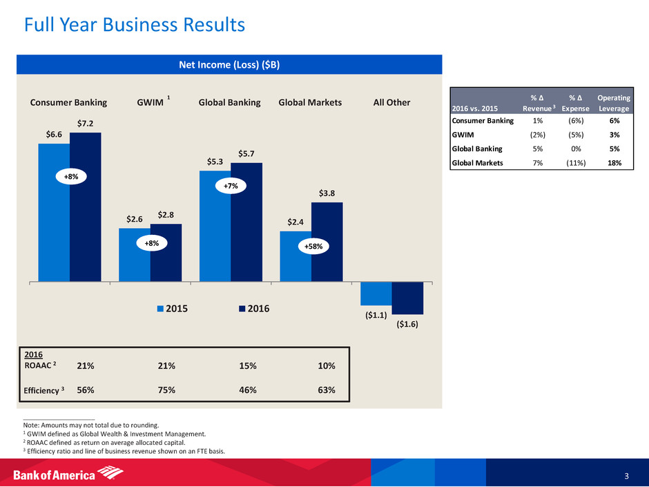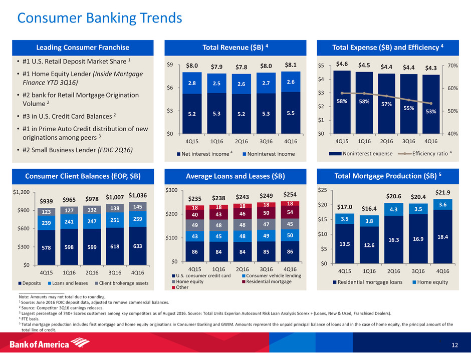 1 Reported on a GAAP basis. On an FTE basis, revenue of $20.2B, $21.9B and $19.8B in 4Q16, 3Q16 and 4Q15, respectively, and efficiency ratio of 65%, 62% and 71% in 4Q16, 3Q16 and 4Q15, respectively.