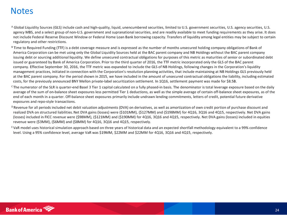 issued or guaranteed by Bank of America Corporation. Prior to the third quarter of 2016, the TTF metric incorporated only the GLS of the BAC parent