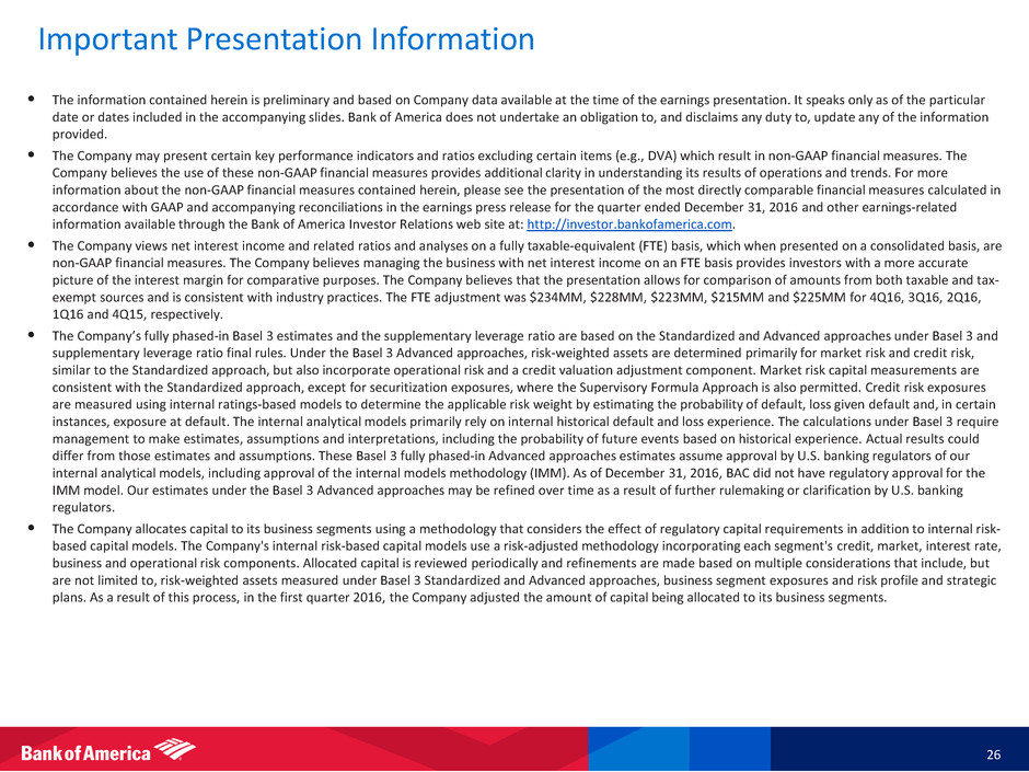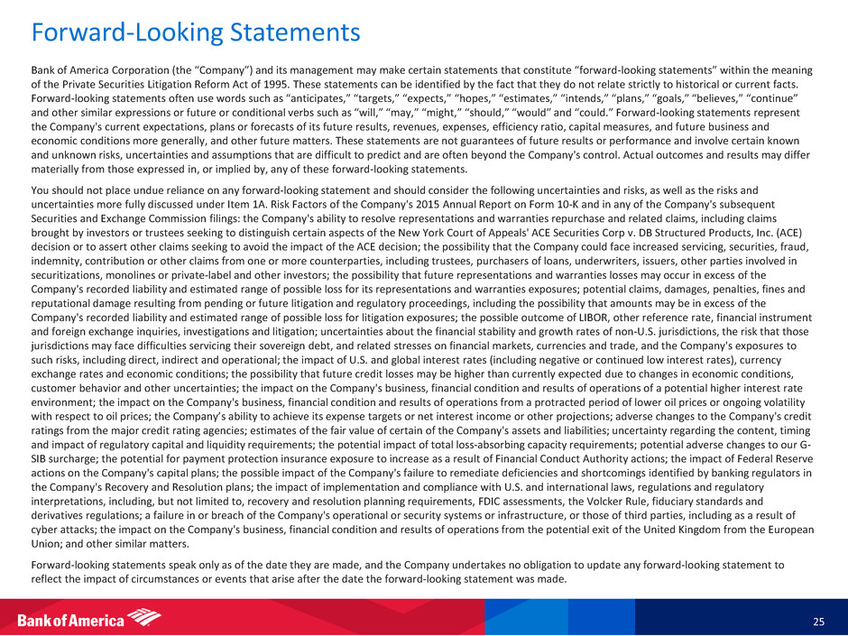 date or dates included in the accompanying slides. Bank of America does not undertake an obligation to, and disclaims any duty to, update any of the information
