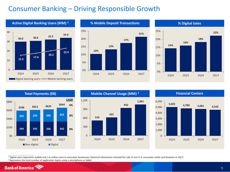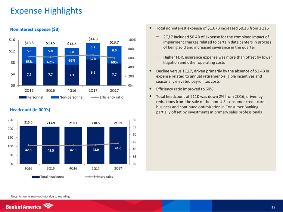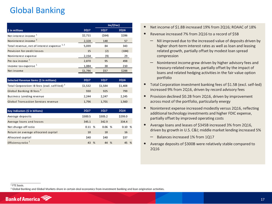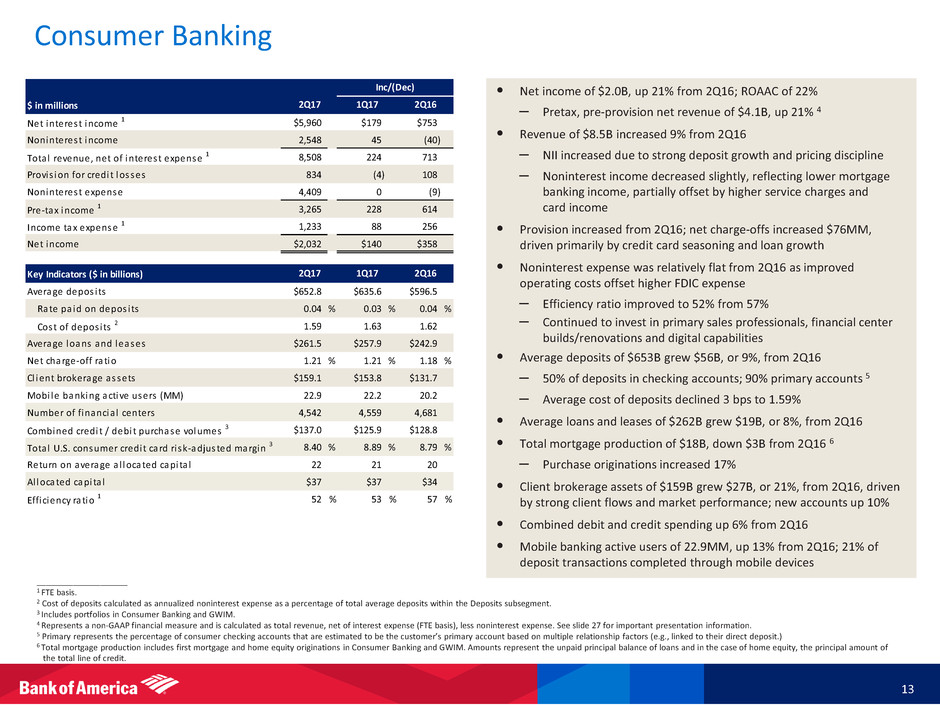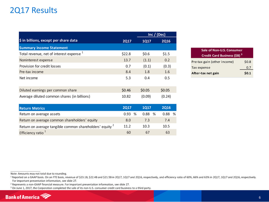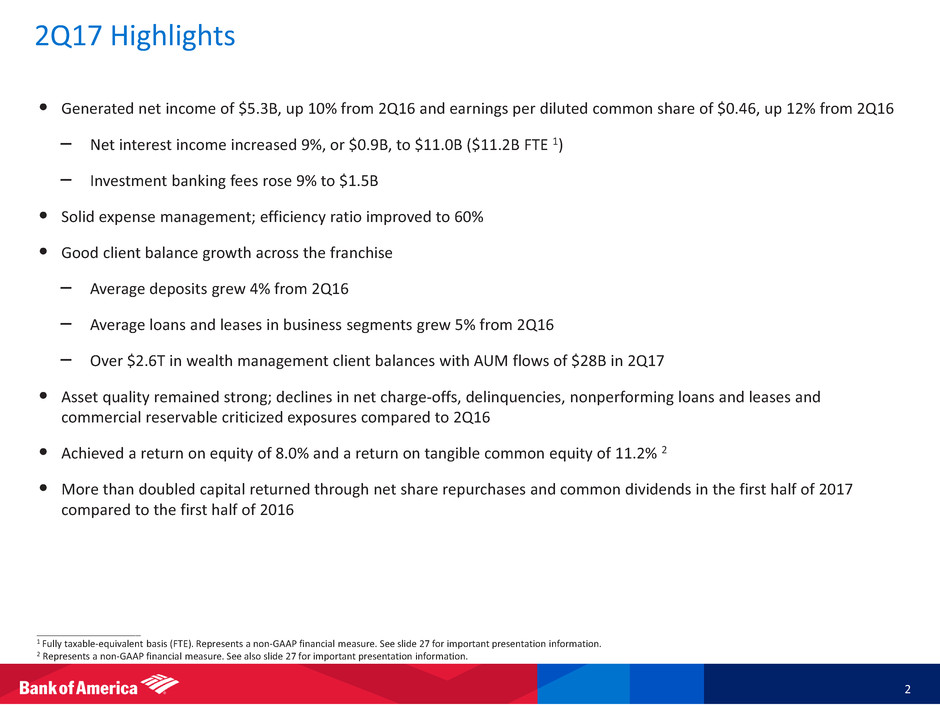 • Generated net income of $5.3B, up 10% from 2Q16 and earnings per diluted common share of $0.46, up 12% from 2Q16