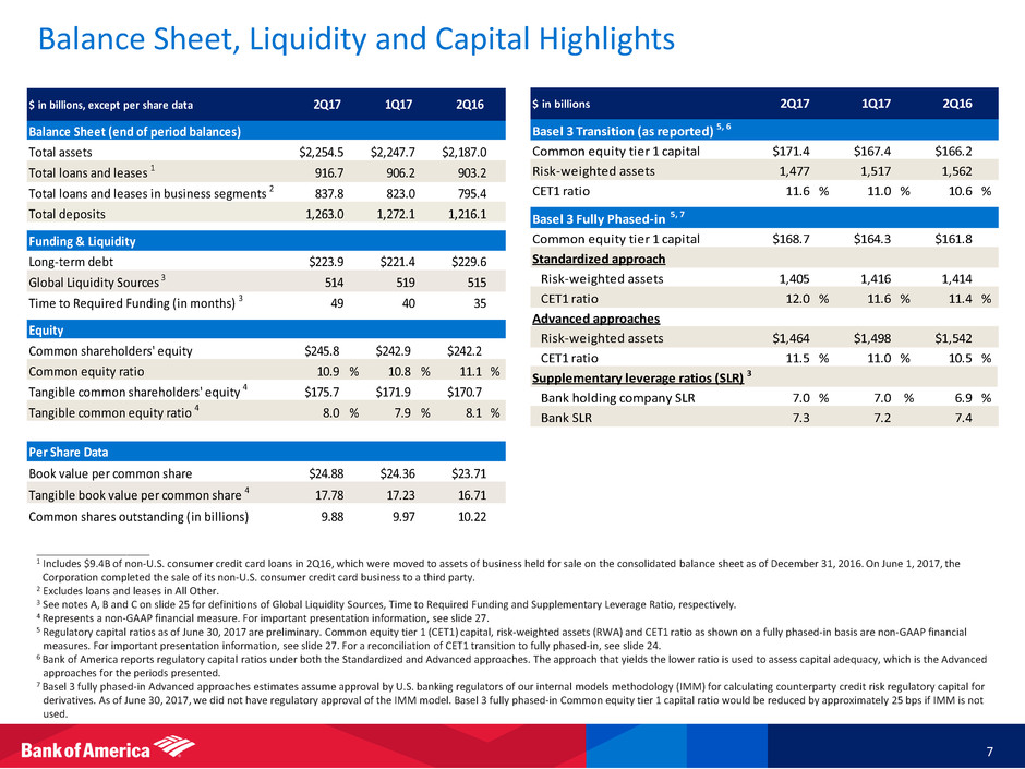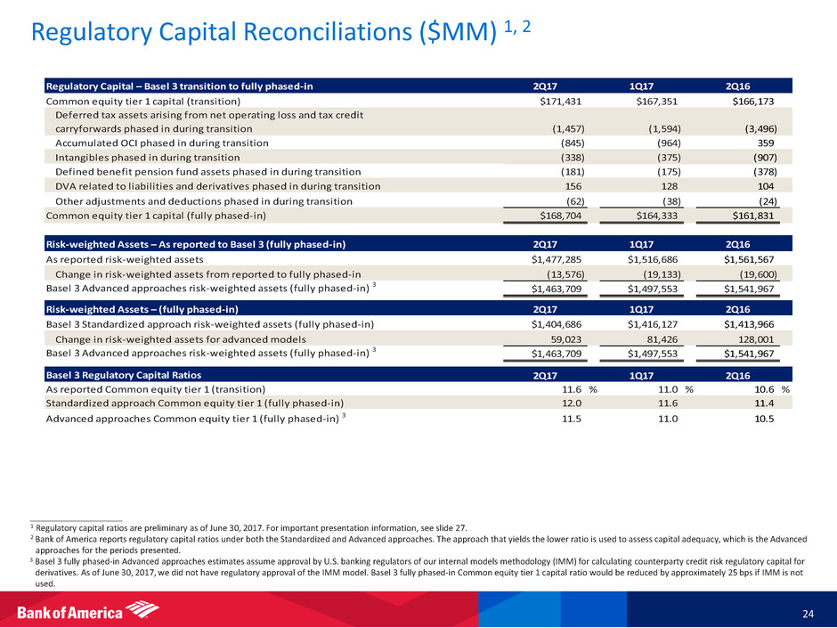 1 Regulatory capital ratios are preliminary as of June 30, 2017. For important presentation information, see slide 27.