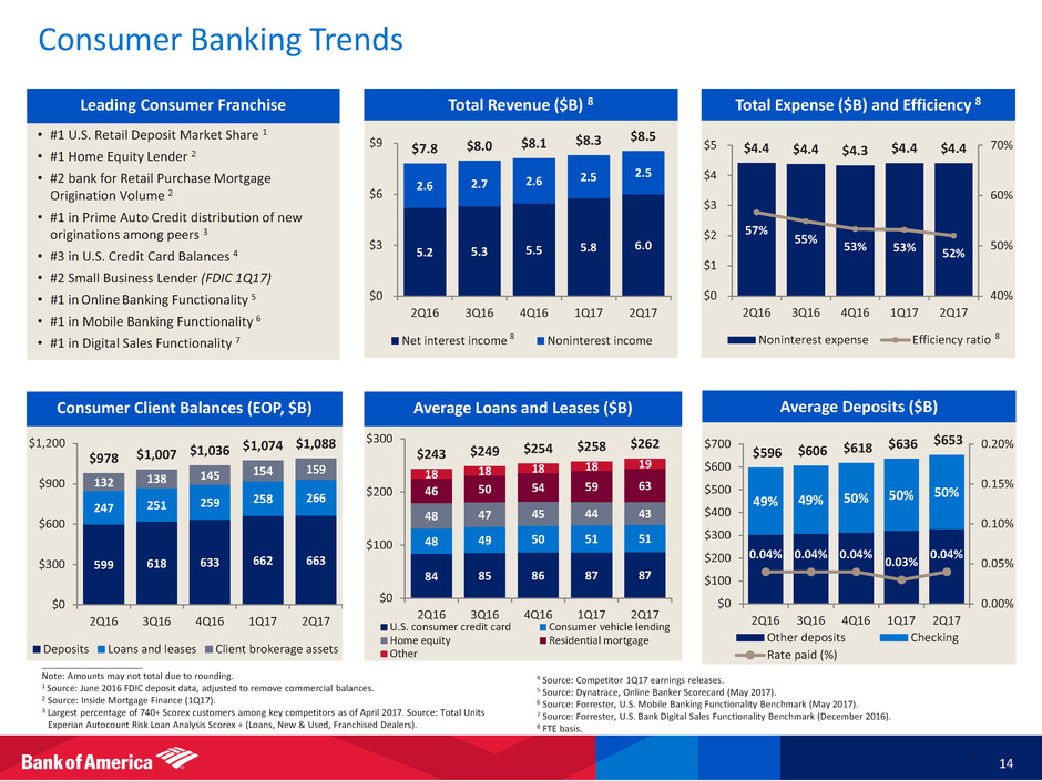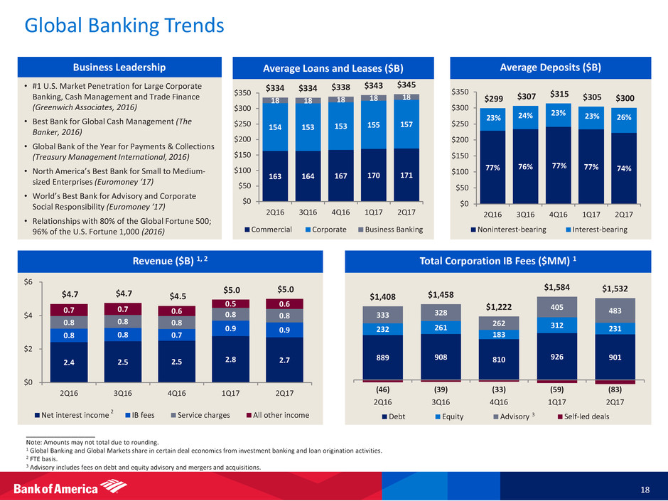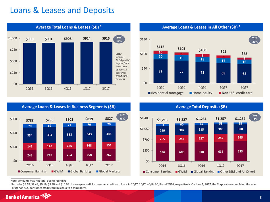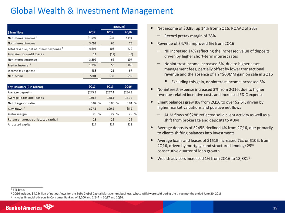 – Over $2.6T in wealth management client balances with AUM flows of $28B in 2Q17