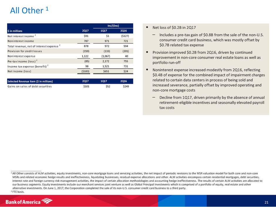 Consumer Banking GWIM Global Banking Global Markets All Other