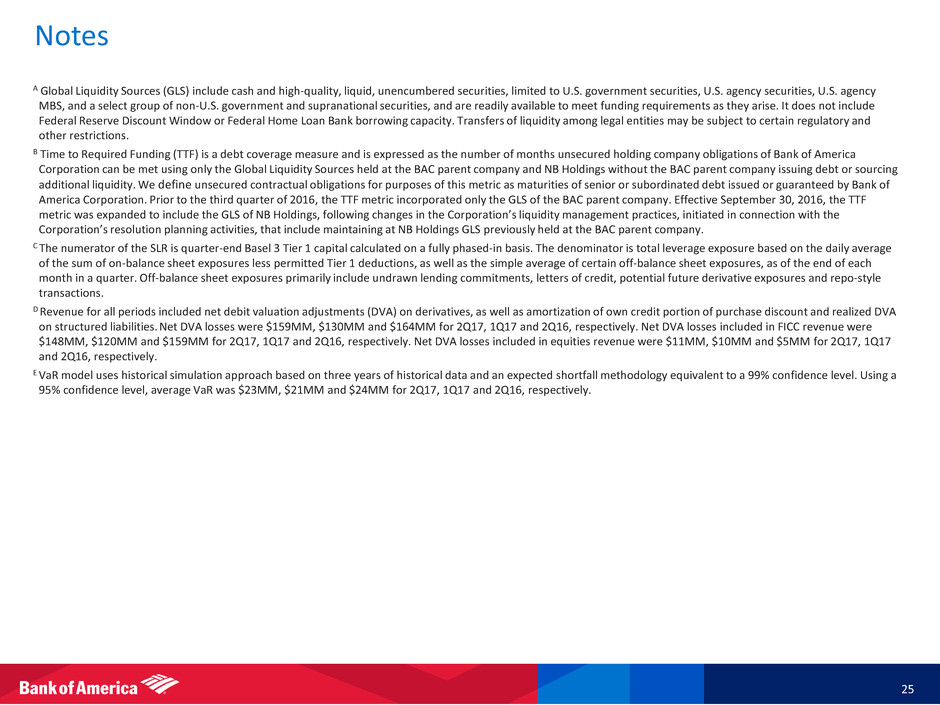 America Corporation. Prior to the third quarter of 2016, the TTF metric incorporated only the GLS of the BAC parent company. Effective September 30, 2016, the TTF