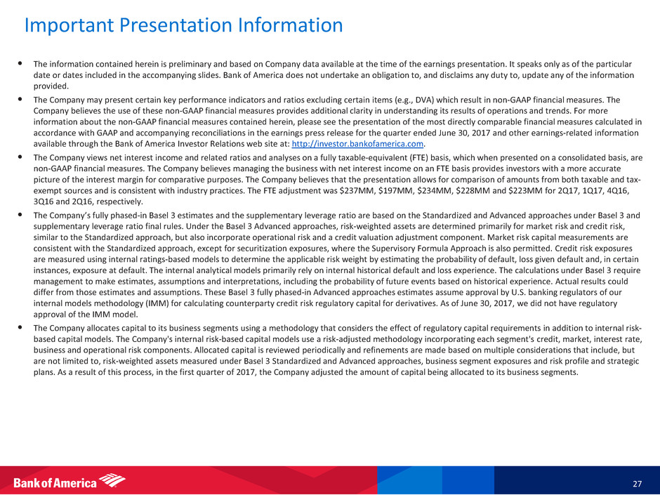 date or dates included in the accompanying slides. Bank of America does not undertake an obligation to, and disclaims any duty to, update any of the information