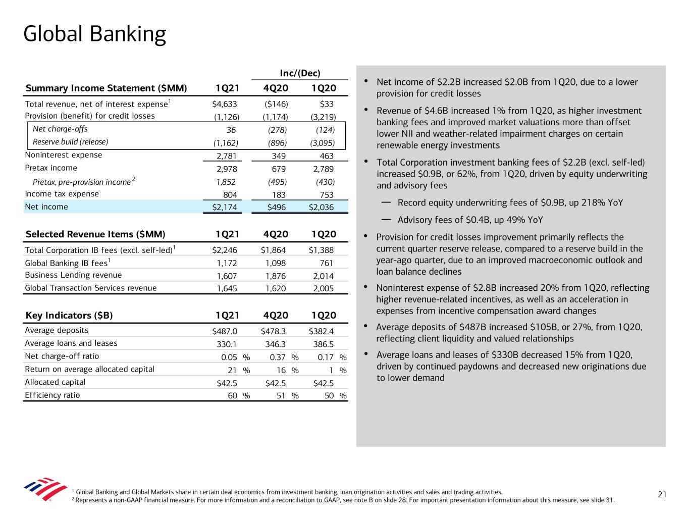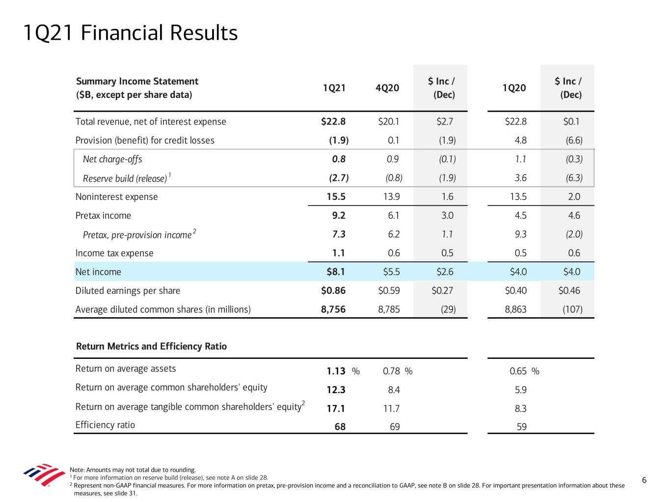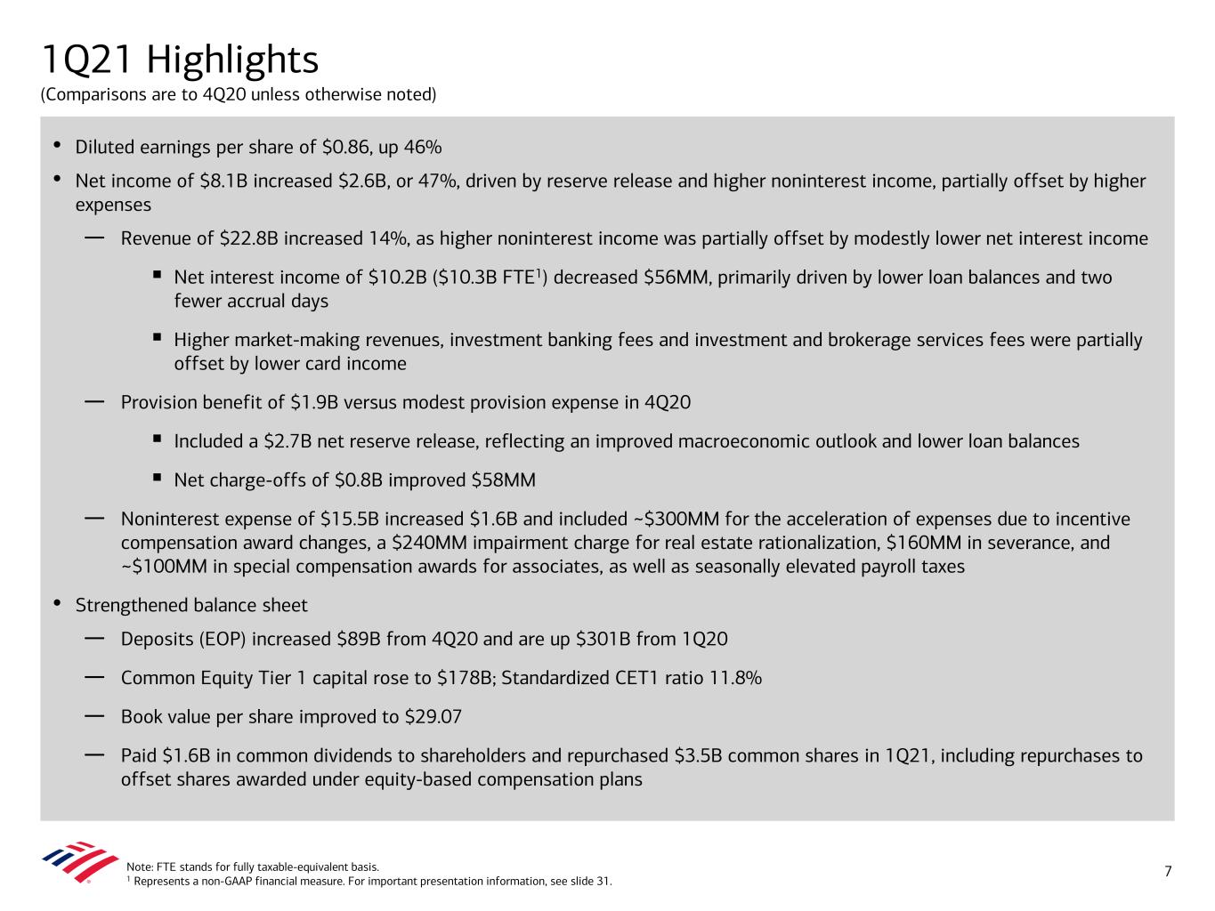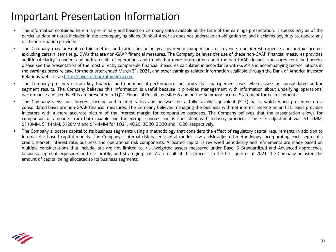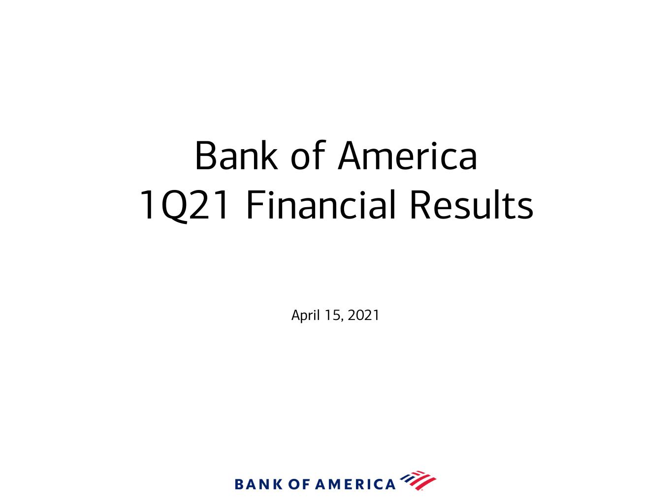 April 15, 2021 Bank of America 1Q21 Financial Results
