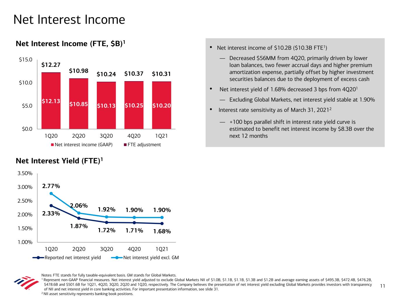 207 242 190 170 165 176 252 281 309 322 $382 $494 $471 $478 $487 $0 $100 $200 $300 $400 $500 1Q20 2Q20 3Q20 4Q20 1Q21 Interest-bearing Noninterest-bearing 339 362 378 389 405 184 199 207 213 224 214 250 276 283 295 $737 $811 $861 $885 $924 $0 $250 $500 $750 $1,000 1Q20 2Q20 3Q20 4Q20 1Q21 Money market, Savings, CD/IRA Interest checking Noninterest-bearing 1,020 1,116 1,083 1,091 1,130 419 542 612 646 675 $1,439 $1,658 $1,695 $1,737 $1,806 $0 $500 $1,000 $1,500 $2,000 1Q20 2Q20 3Q20 4Q20 1Q21 Interest-bearing Noninterest-bearing 248 270 273 285 304 16 17 19 20 23$263 $287 $292 $306 $326 $0 $100 $200 $300 $400 1Q20 2Q20 3Q20 4Q20 1Q21 Interest-bearing Noninterest-bearing Consumer Banking ($B) GWIM ($B) Global Banking ($B) Total Corporation ($B) YoY +25% +61% +11% YoY +25% +19% YoY +24% +45% +23% YoY +27% +84% (20%) +31% Average Deposits Bank of America Ranked #1 in U.S. Deposit Market Share1 10Note: Amounts may not total due to rounding. Total Corporation also includes Global Markets and All Other. 1 Based on June 30, 2020 FDIC deposit data.