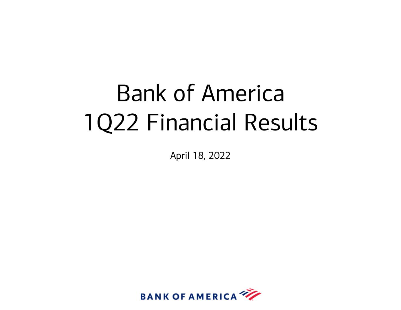 Bank of America 1Q22 Financial Results April 18, 2022