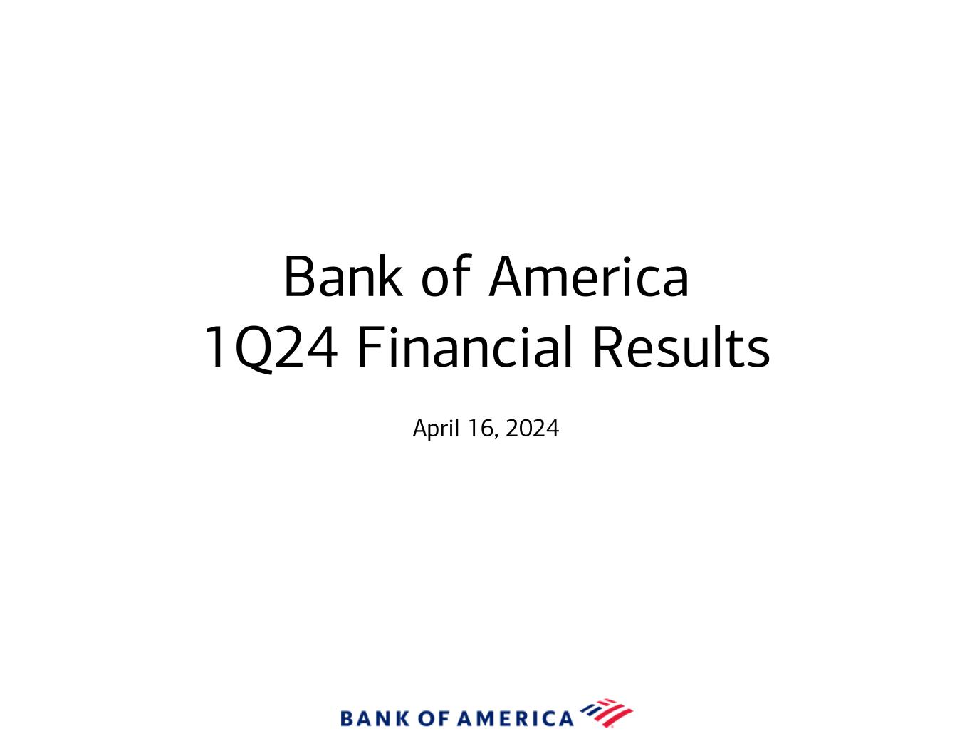 Bank of America 1Q24 Financial Results April 16, 2024