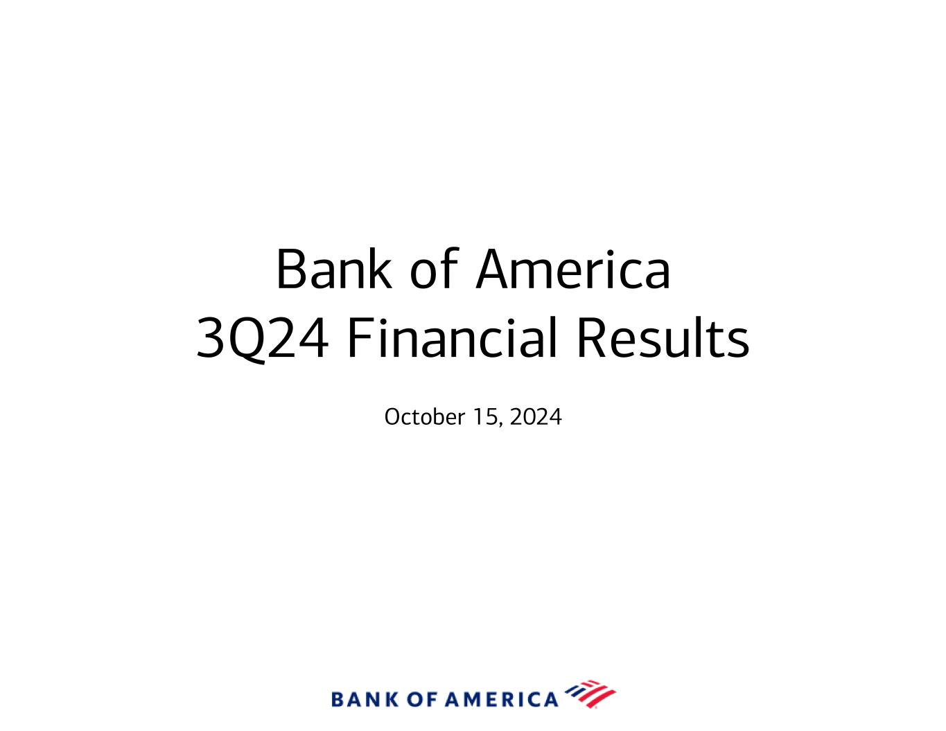 Bank of America 3Q24 Financial Results October 15, 2024