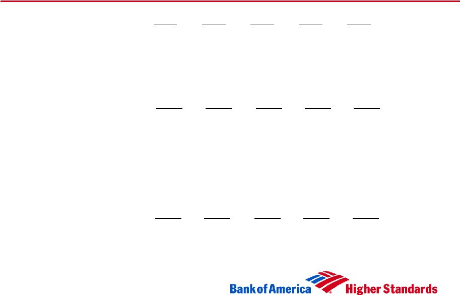 45.4 44.7 41.7 38.3 32.4 Deposit Spreads Checking 4.18 % 4.16 % 4.17 % 4.14 % 4.24 % Savings 3.36 3.52 3.78 4.01 4.37 MMS 2.53 2.50 1.89 1.54 1.34 CDs & IRAs 1.21 1.01 .80 .73 .63 Foreign & Other 3.68 3.58 3.02 2.93 2.80 Total GCSB deposits 2.93 2.86 2.63 2.54 2.52 1 Proforma 1Q05 includes MBNA refer to 8-K filing 4/10/06. 2 Premier customer balances transferred to GWIM segment |