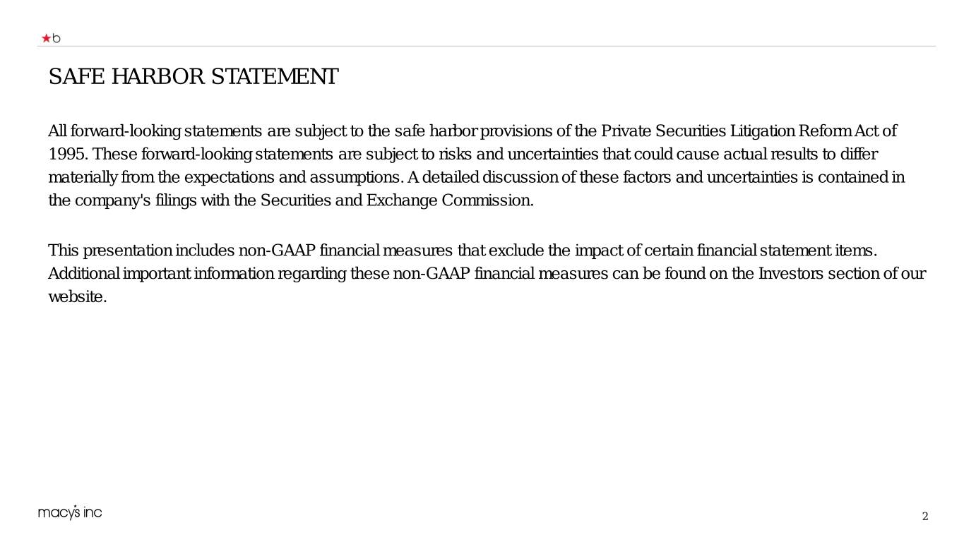 SAFE HARBOR STATEMENT All forward-looking statements are subject to the safe harbor provisions of the Private Securities Litigation Reform Act of 1995. These forward-looking statements are subject to risks and uncertainties that could cause actual results to differ materially from the expectations and assumptions. A detailed discussion of these factors and uncertainties is contained in the company's filings with the Securities and Exchange Commission. This presentation includes non-GAAP financial measures that exclude the impact of certain financial statement items. Additional important information regarding these non-GAAP financial measures can be found on the Investors section of our website. 2