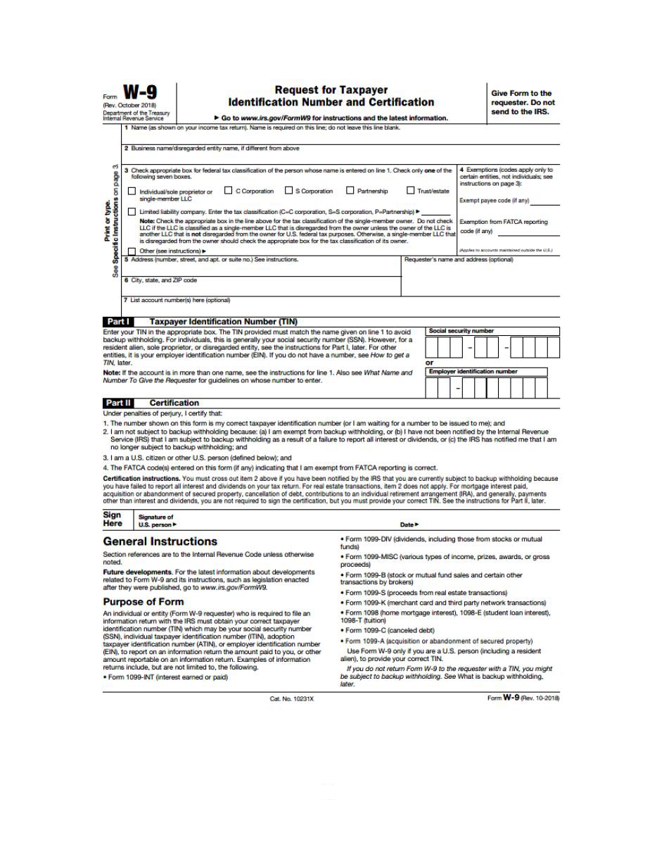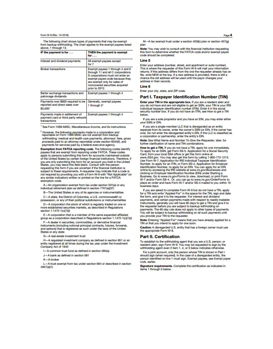 (also please complete IRS Form W-9 below or appropriate IRS Form W-8)