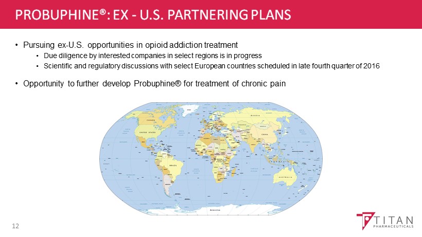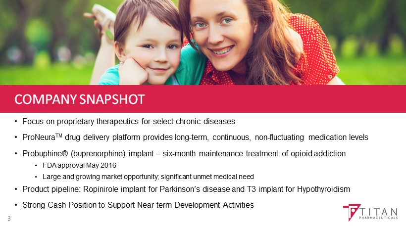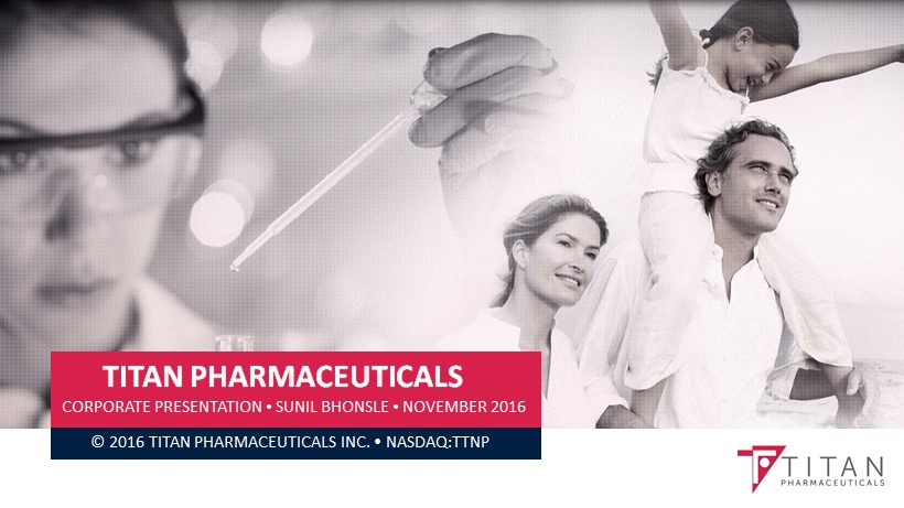 TITAN PHARMACEUTICALS CORPORATE PRESENTATION SUNIL BHONSLE NOVEMBER 2016 © 2016 TITAN PHARMACEUTICALS INC. NASDAQ:TTNP