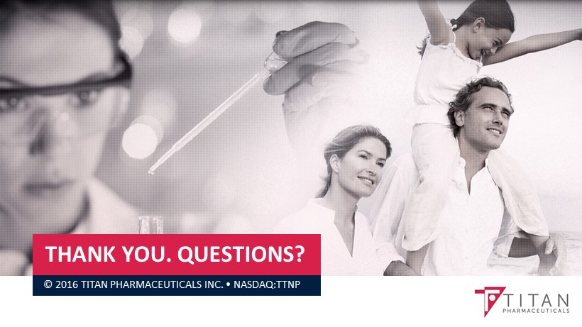 THANK YOU. QUESTIONS? © 2016 TITAN PHARMACEUTICALS INC. NASDAQ:TTNP